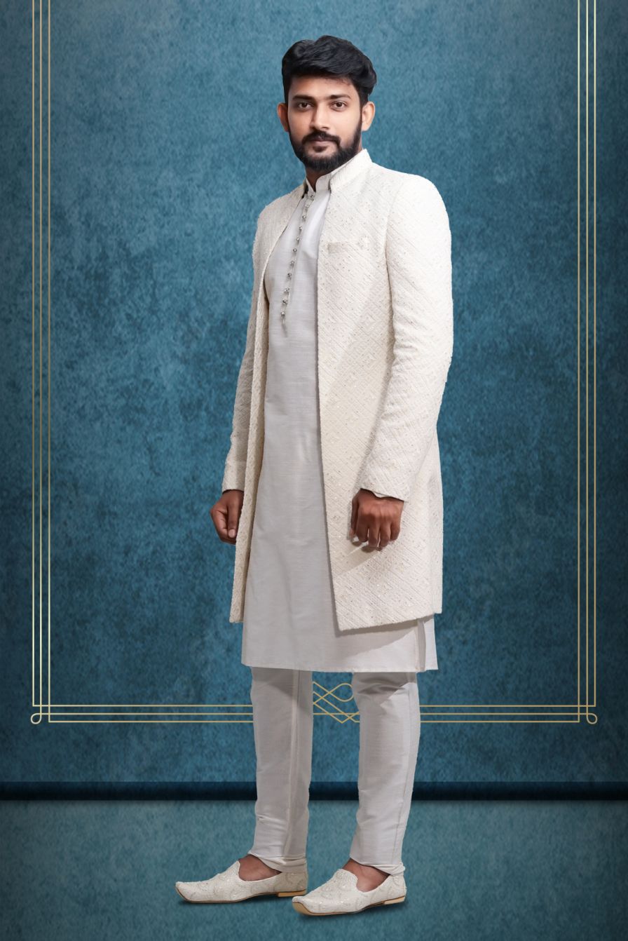 Save 73%Plain Hem Off White Lakhnavi-Sherwani