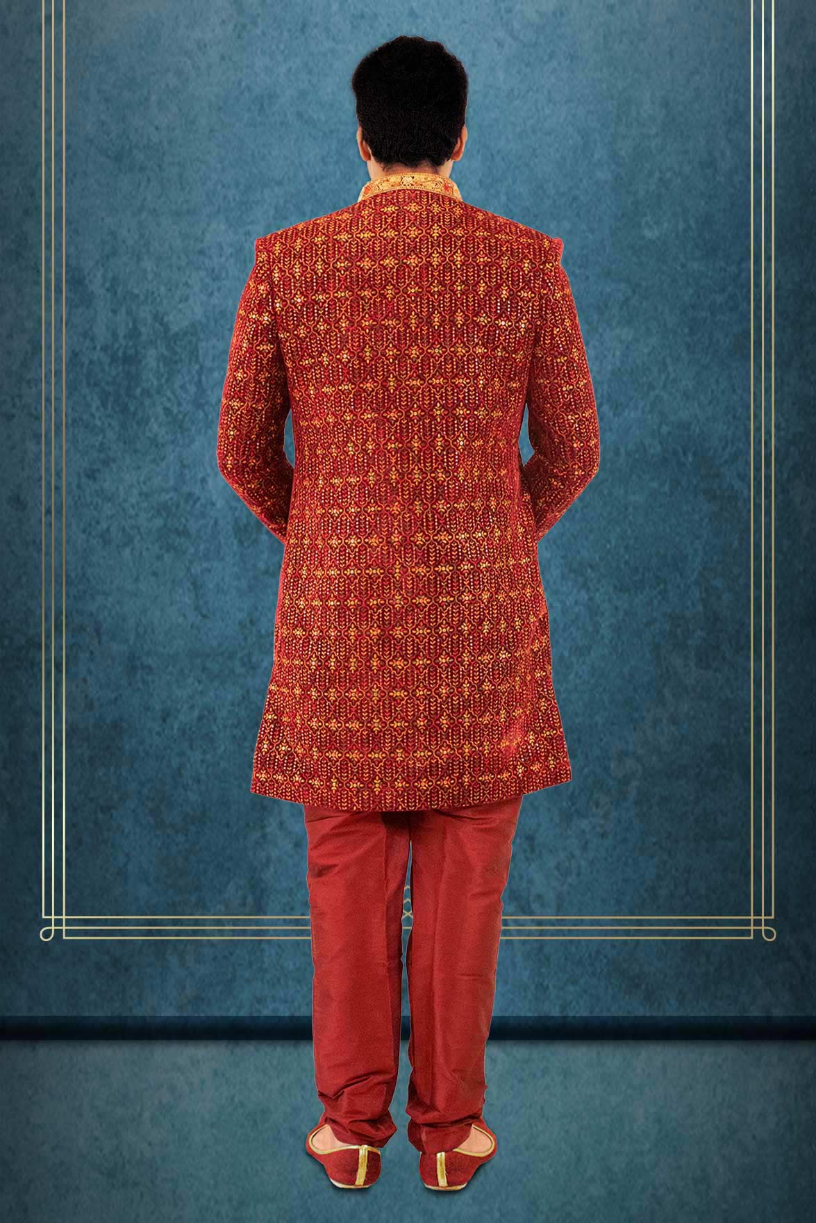 Save 80%Dark Maroon And Fone Jacquard Sherwani