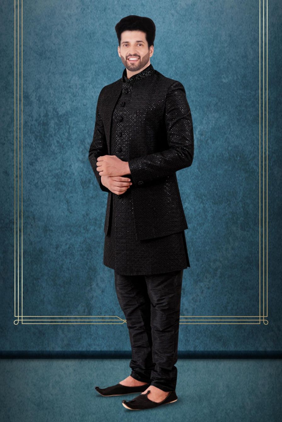 Save 80%Black Silky Jacquard Sherwani