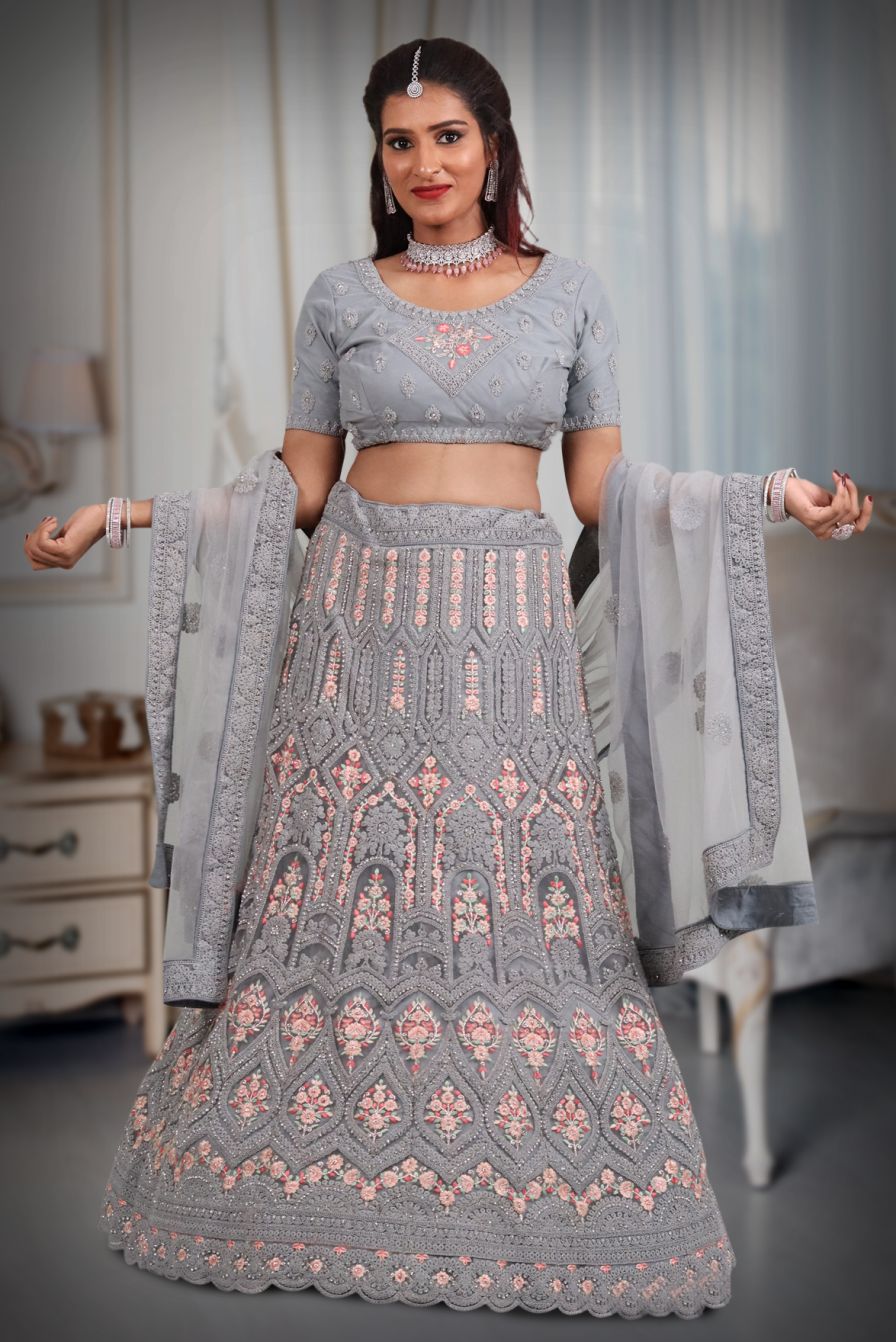 Gray embroidery work lehenga