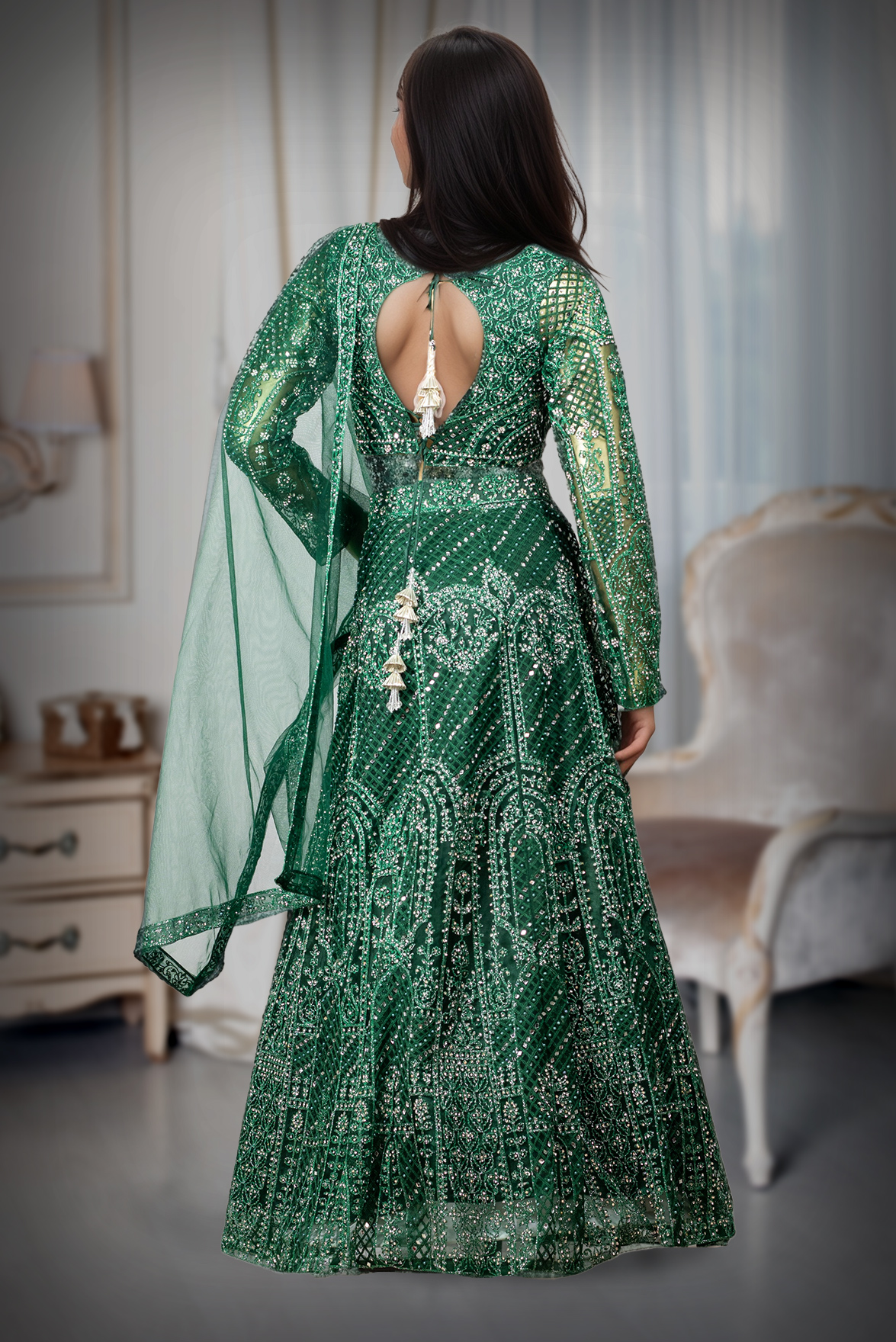 Bottle Green Crop Top Lehenga With Heavy Stonework And Threadwork