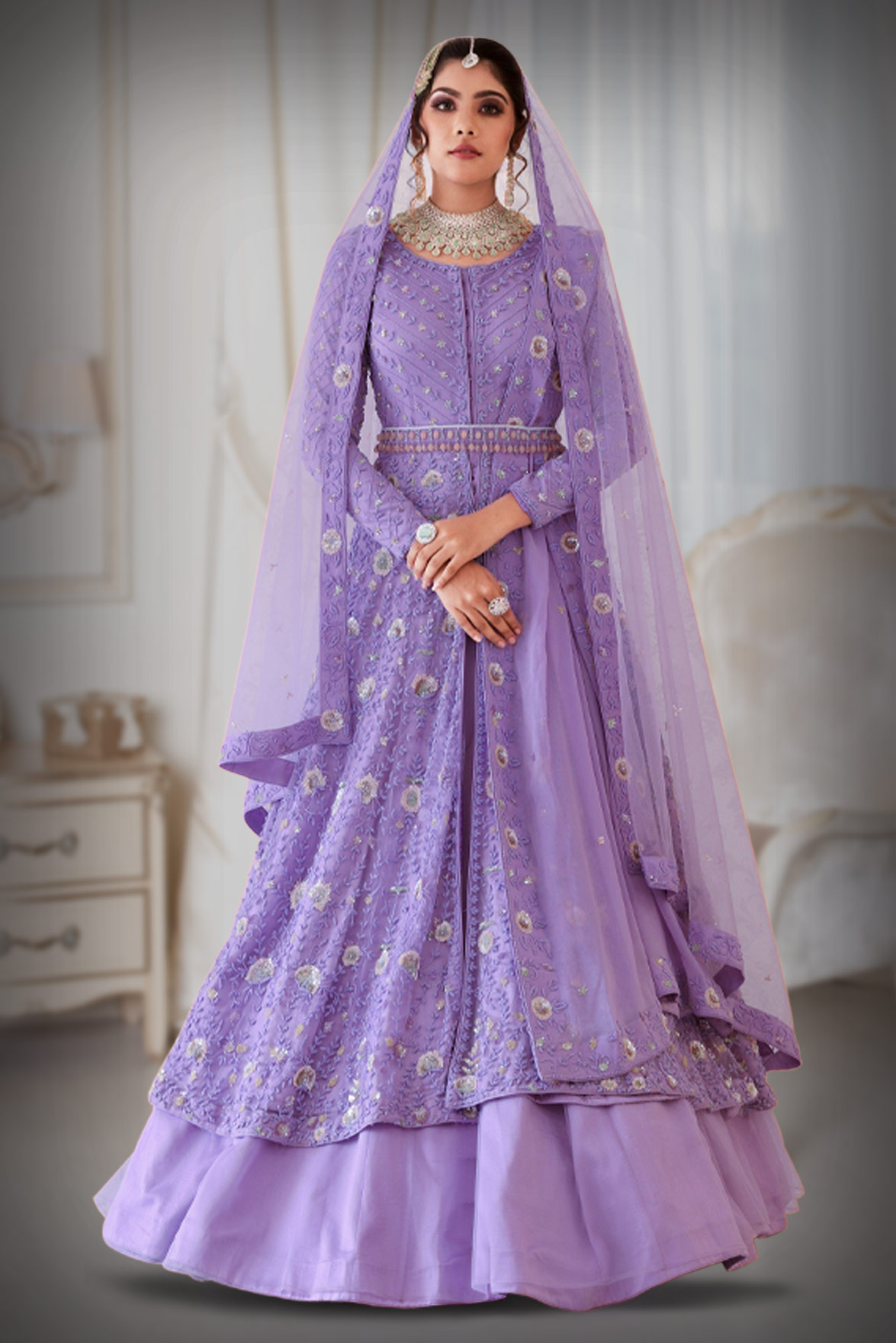Save 87%Lavender Sequins work Jacket and skirt