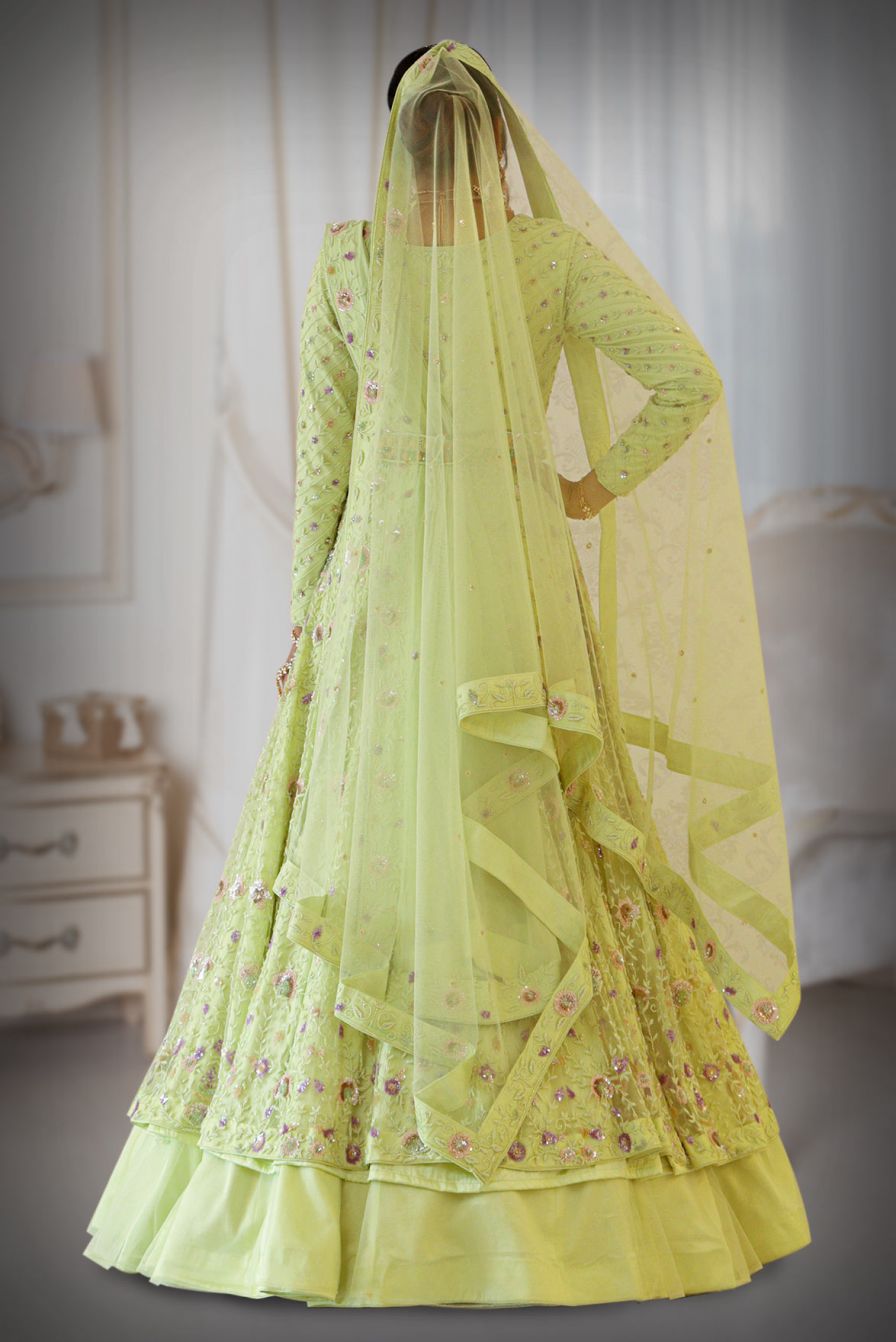Pastel Green sequins work Jacket and Lehenga