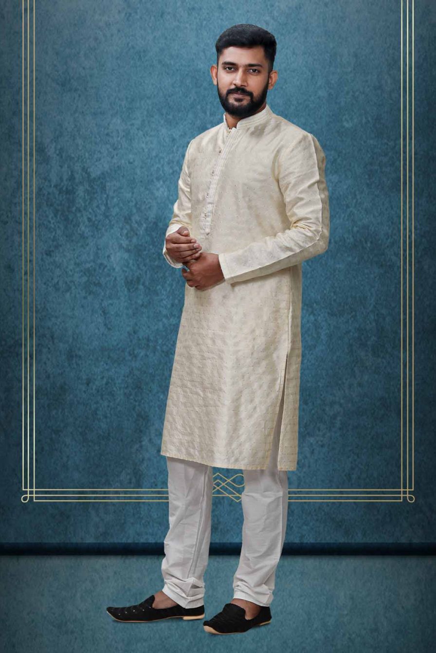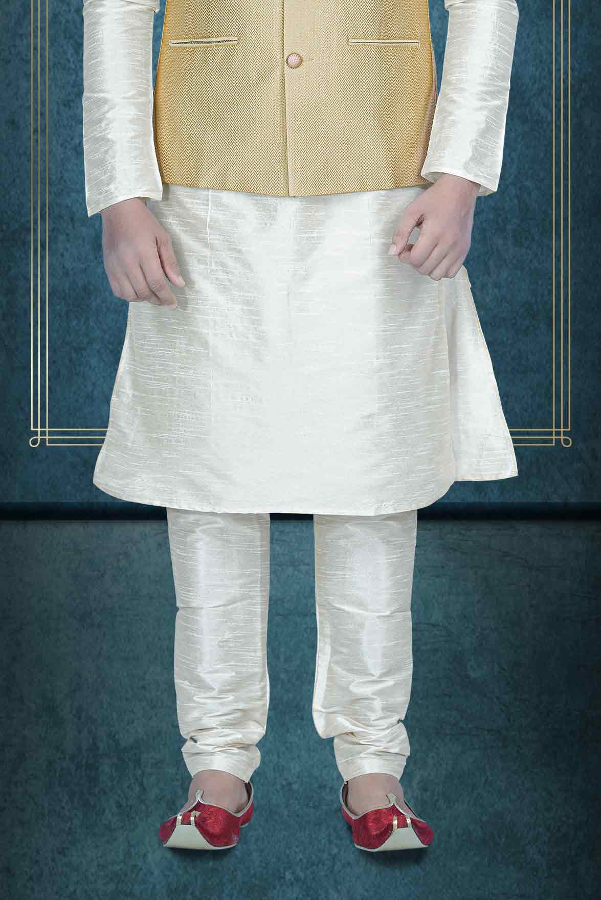 Save 80%Ivory White Ethnic Kurtha In Golden Threadwork Textured Dupion Silk Fabric And White Bottom