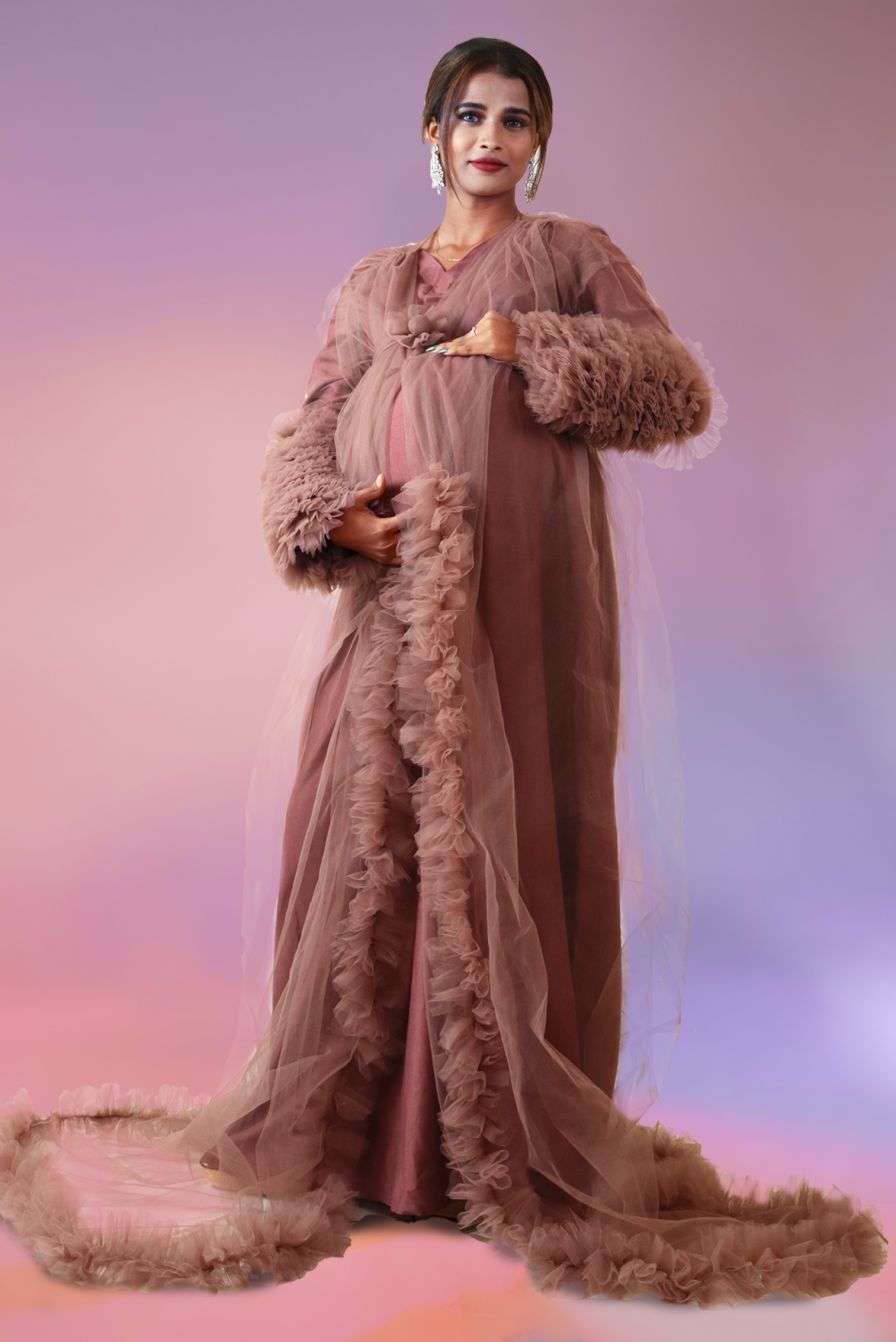 Save 81%Pinkish brown ruffle sleeve robe open gown