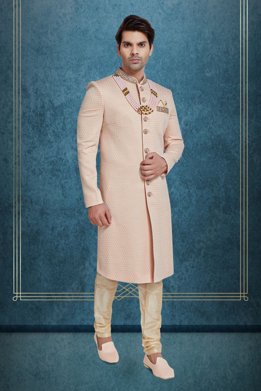 Save 72%Baby Pink & Gold Silky Jacquard Sherwani