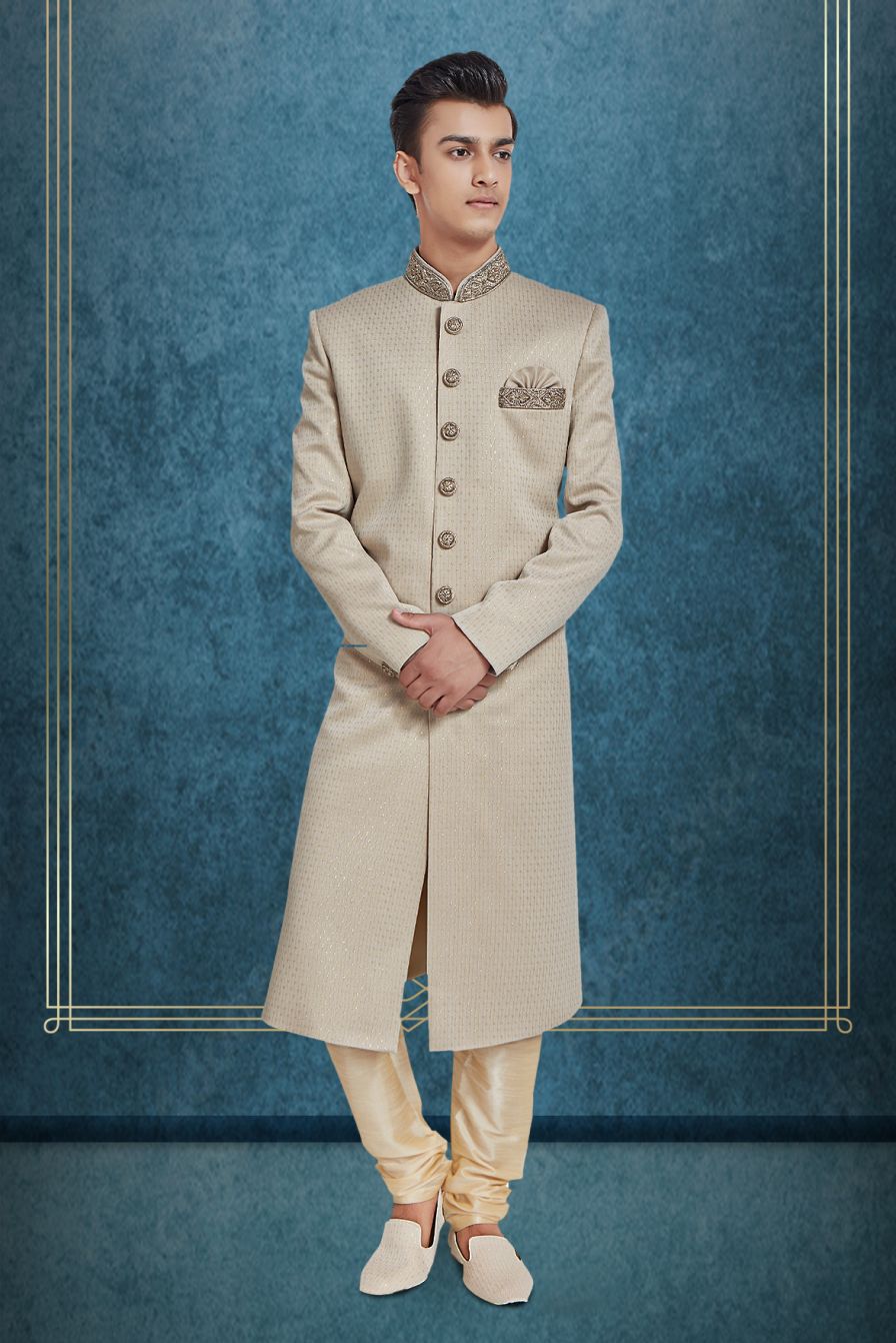 Save 74%Royal Cream And Gold Embroidered Sherwani