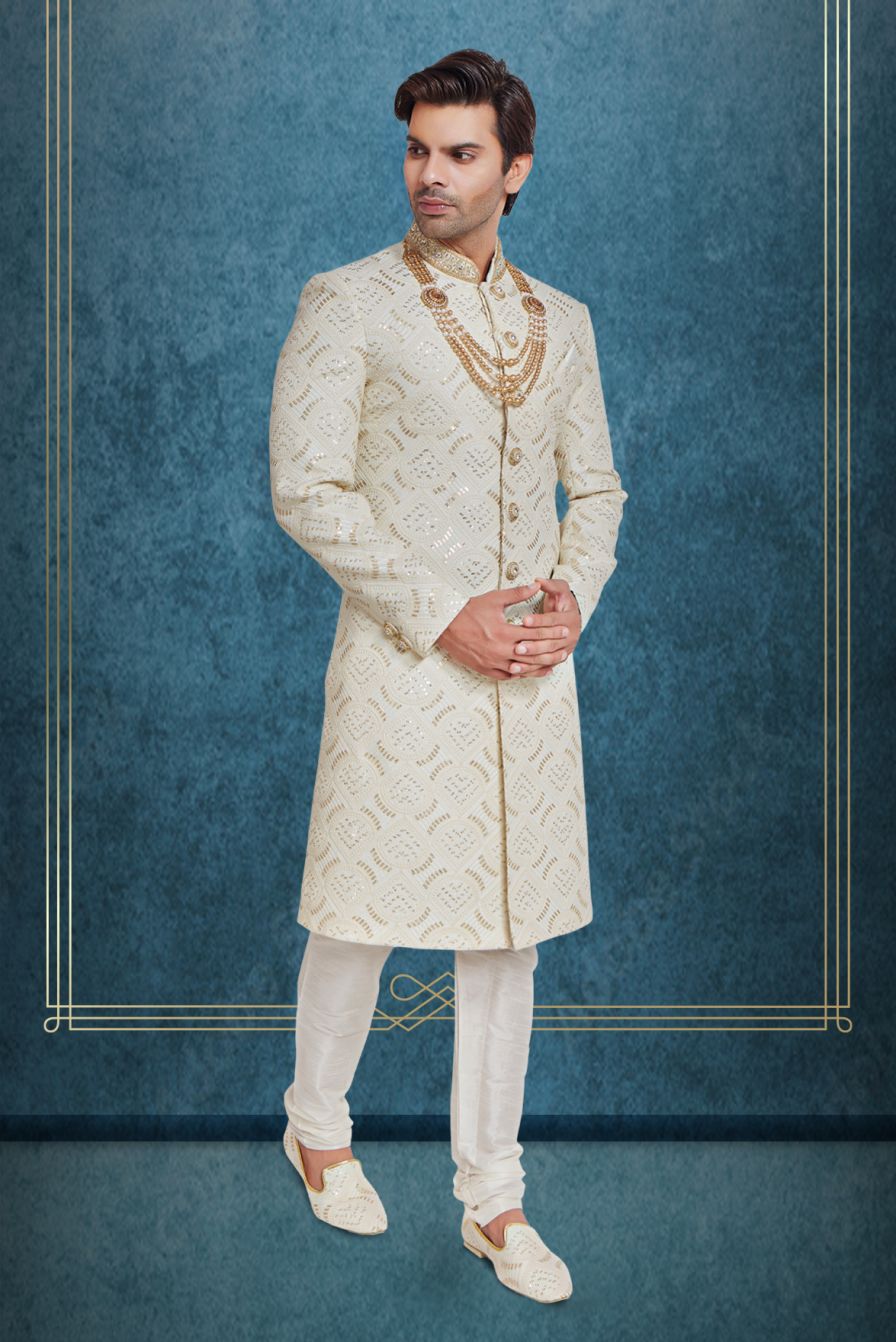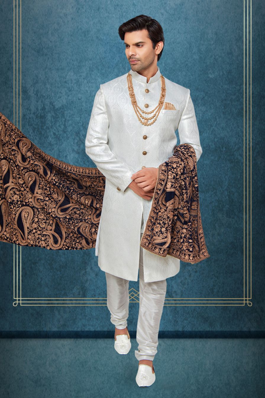 Save 77%Dusty White & Gold Printed Silky Jacquard Sherwani