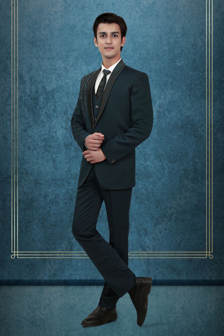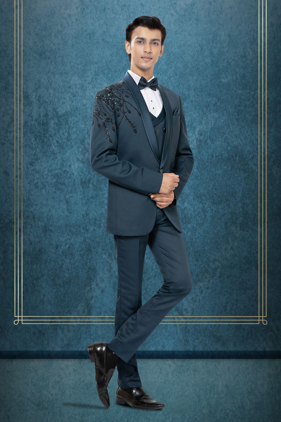 Save 85%Prussian Blue Handworked Designer Tuxedo In 3 pc Set
