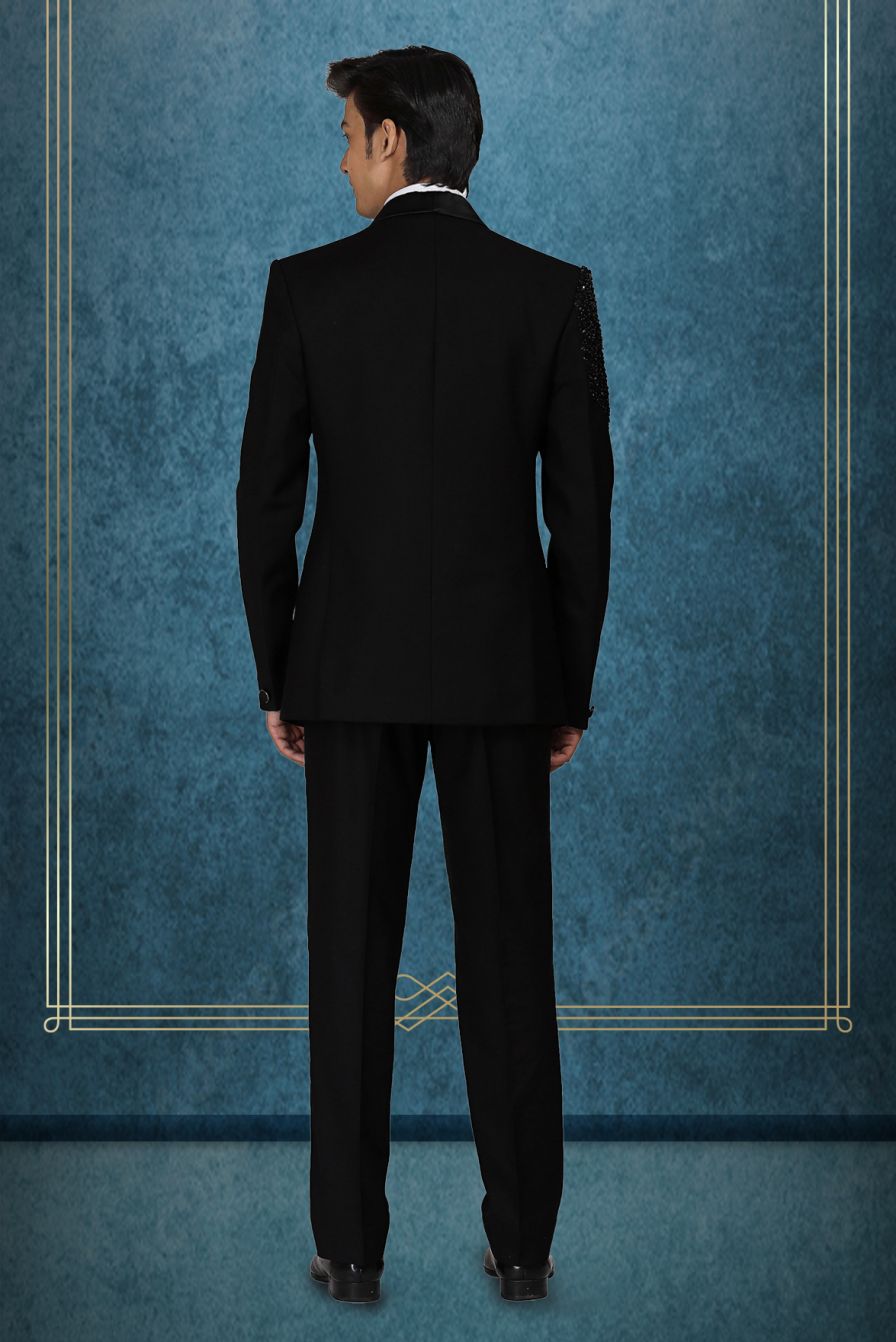 Save 87%Blackish Green Tuxedo Suit with Sequin Embellished Shoulder and Satin Lapels
