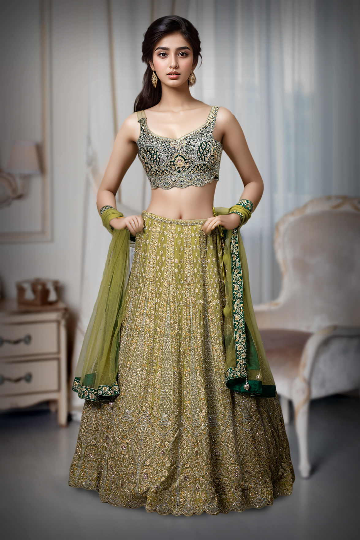 Save 86%Delightful Haldi Lehenga With A Mix Of Lime Yellow And Green Heavy worked Lehenga
