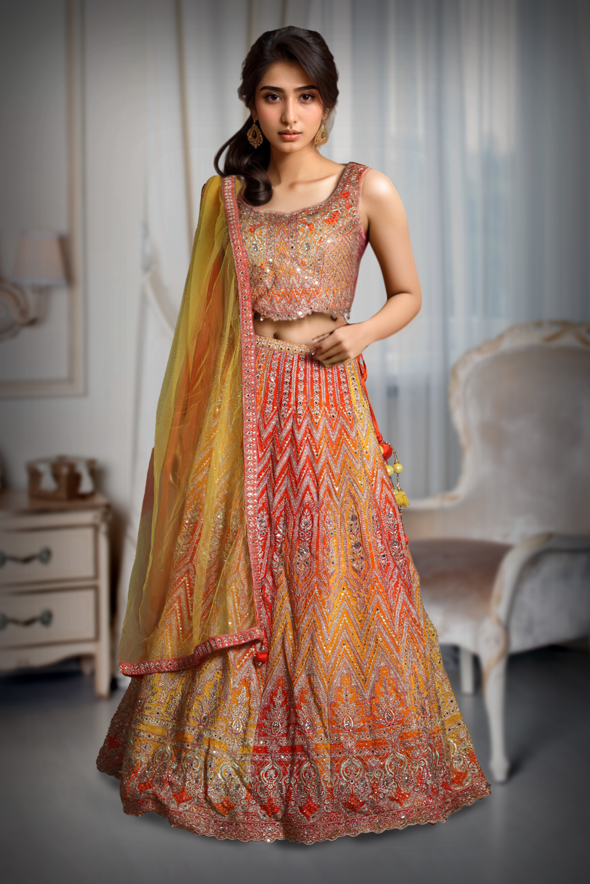 Save 87%Orange And Yellow Ombre Shaded Lehenga With Heavy Embelishment Of Threadworks