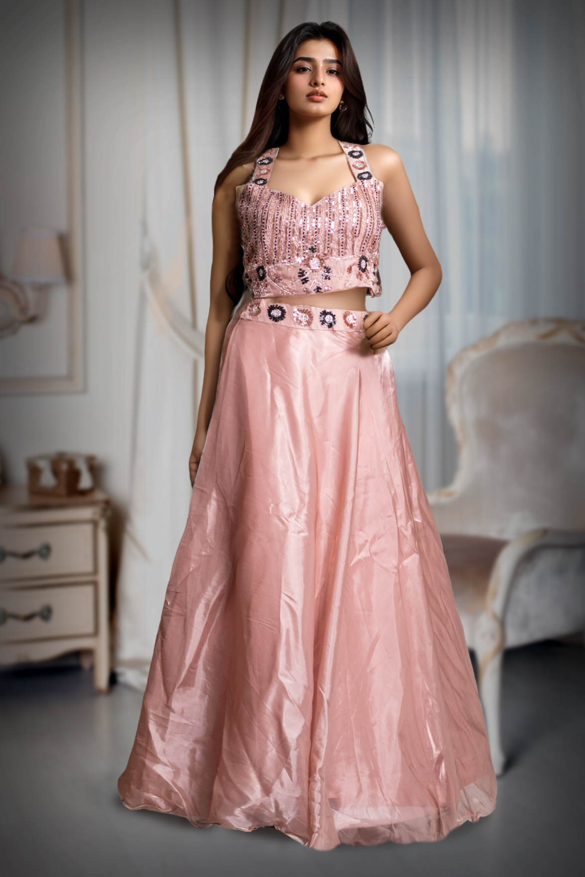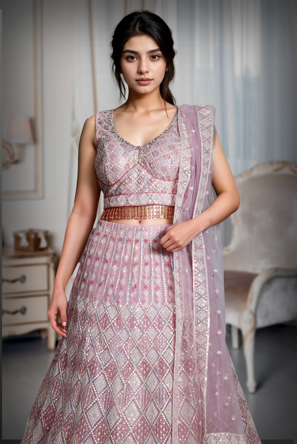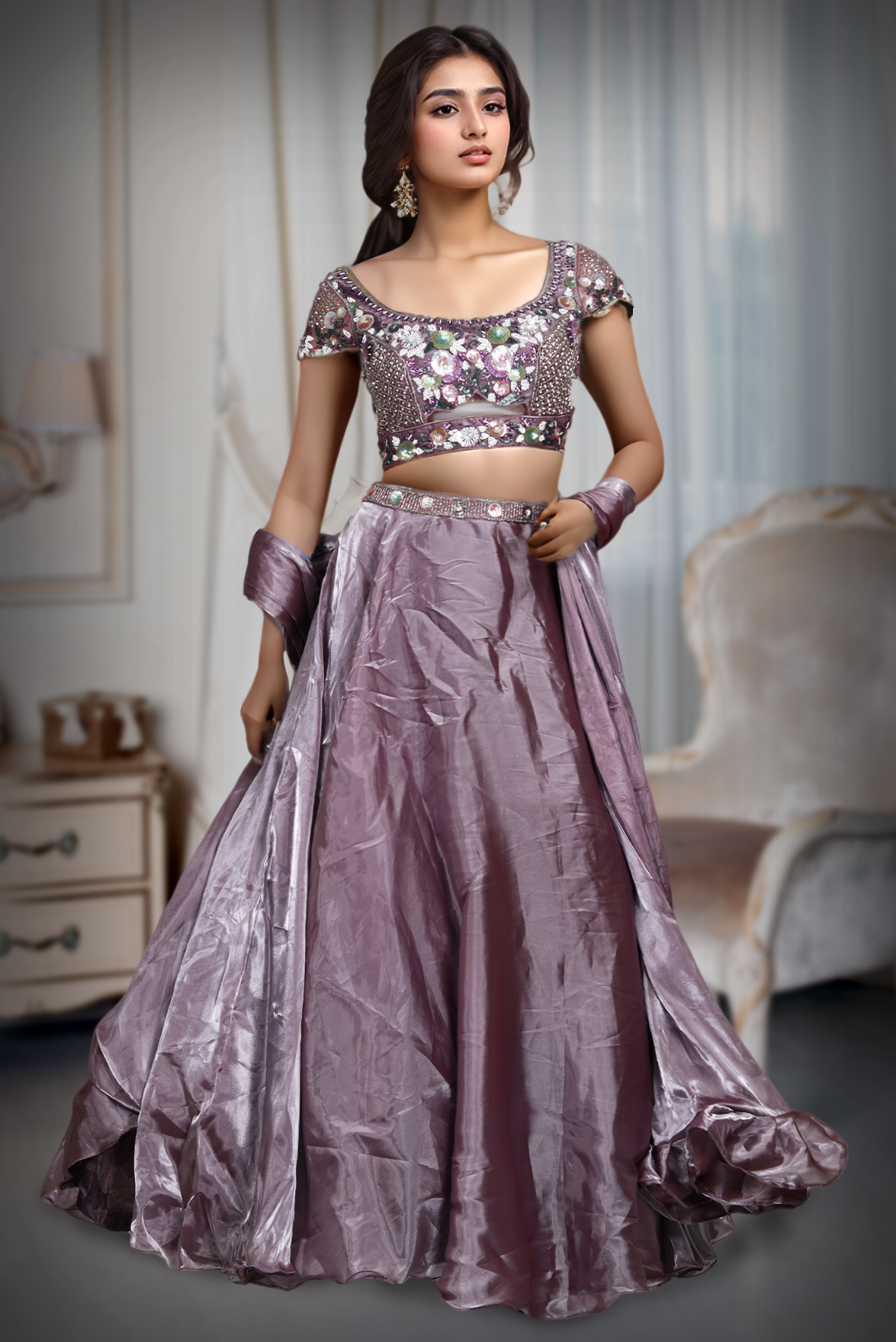 Save 86%Pastel Mauve Tissue Silk Lehenga With Heavy Stone Worked Blouse