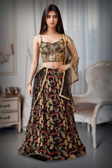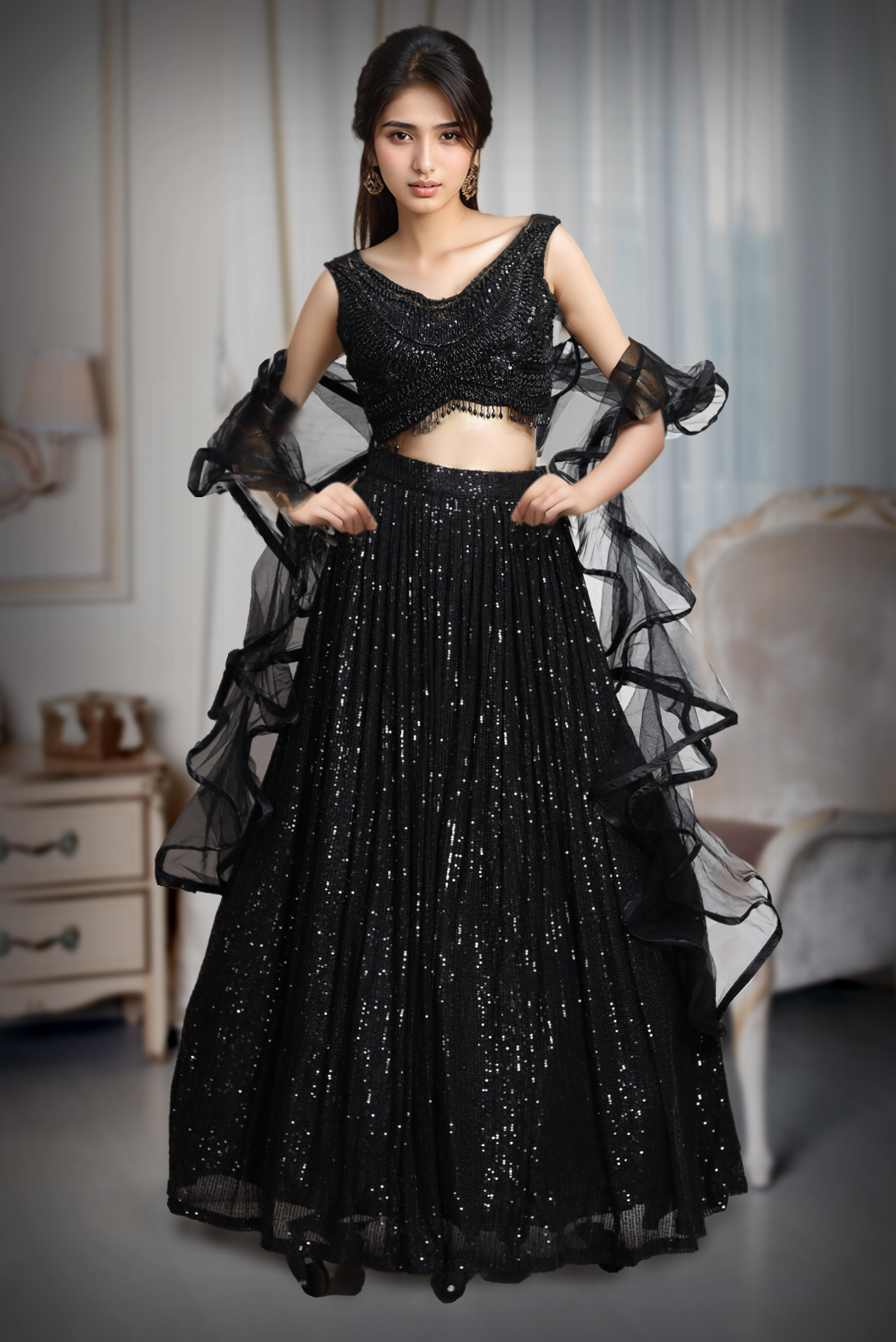 Save 87%Black Colour Georgette Lehenga With Heavy Golden Zari Work Detailing And Heavy Detailed Blouse