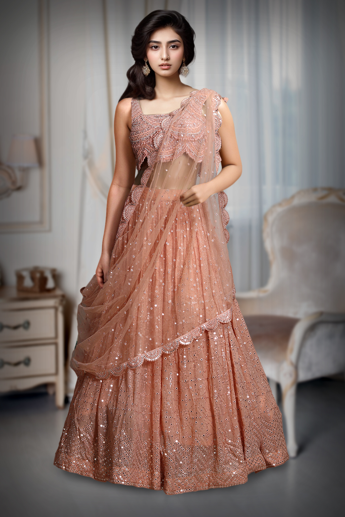 Save 86%Pastel Peach Heavy Stone Worked Bridal Lehenga
