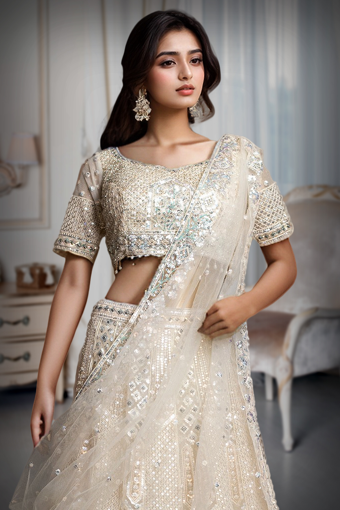 Save 86%Off White Heavy Bridal Lehenga With Same Colour Dupatta