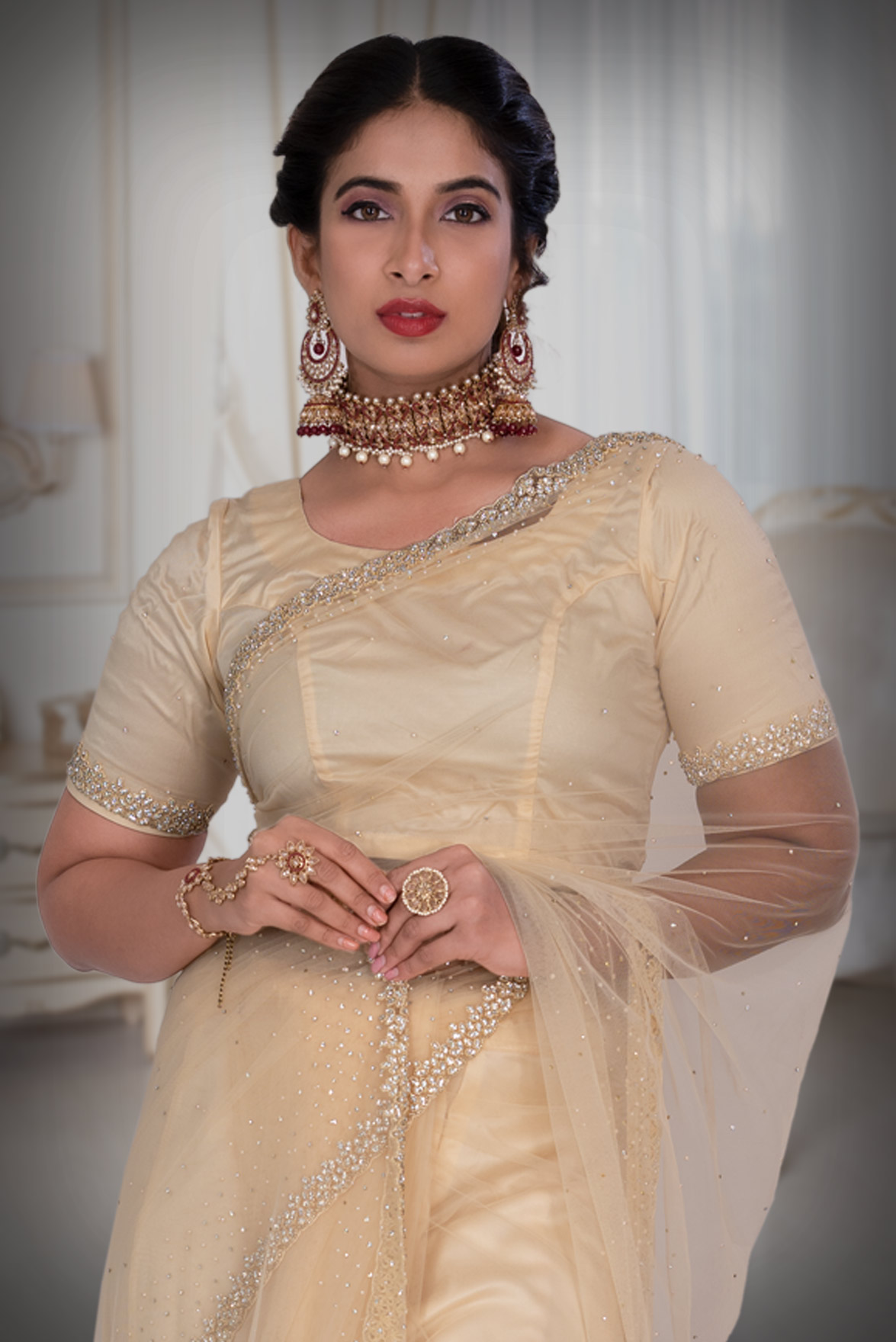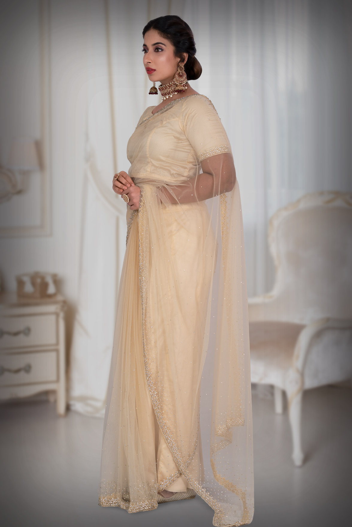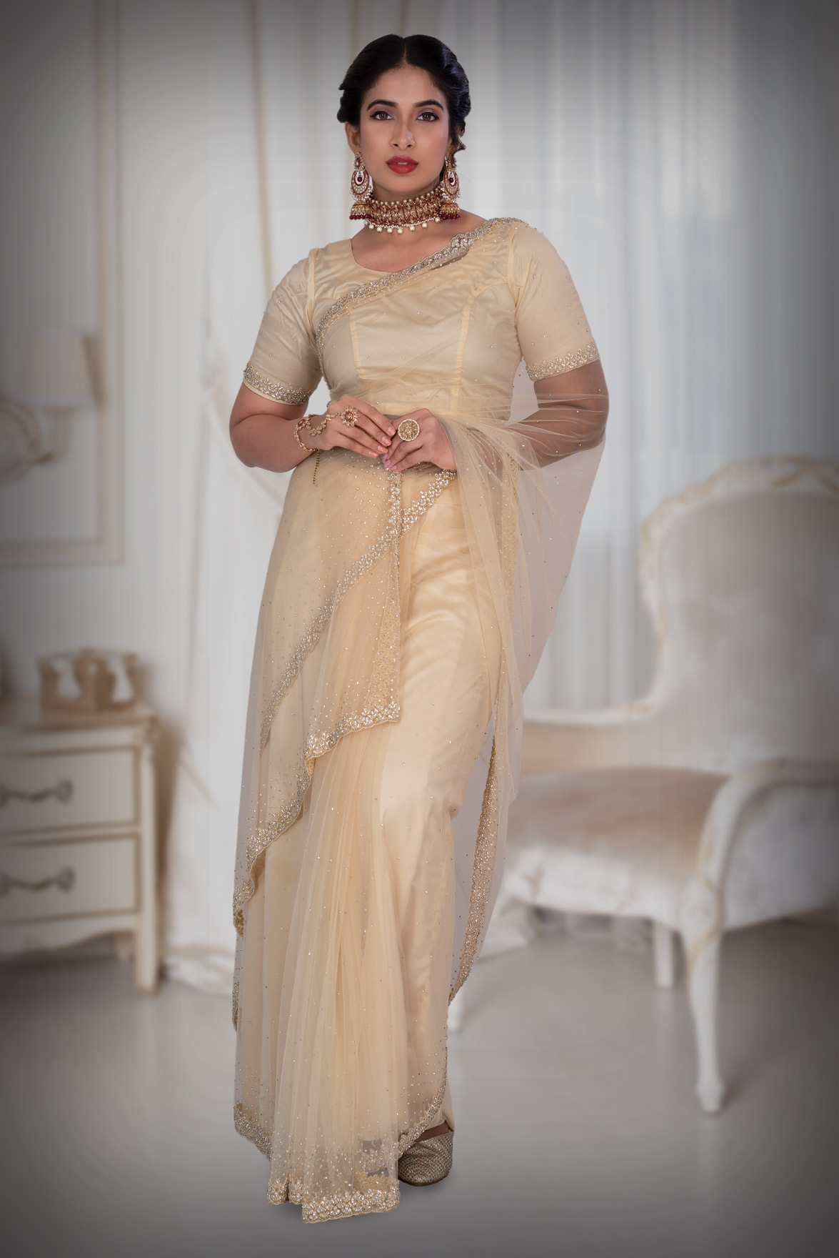 Cream Net Saree