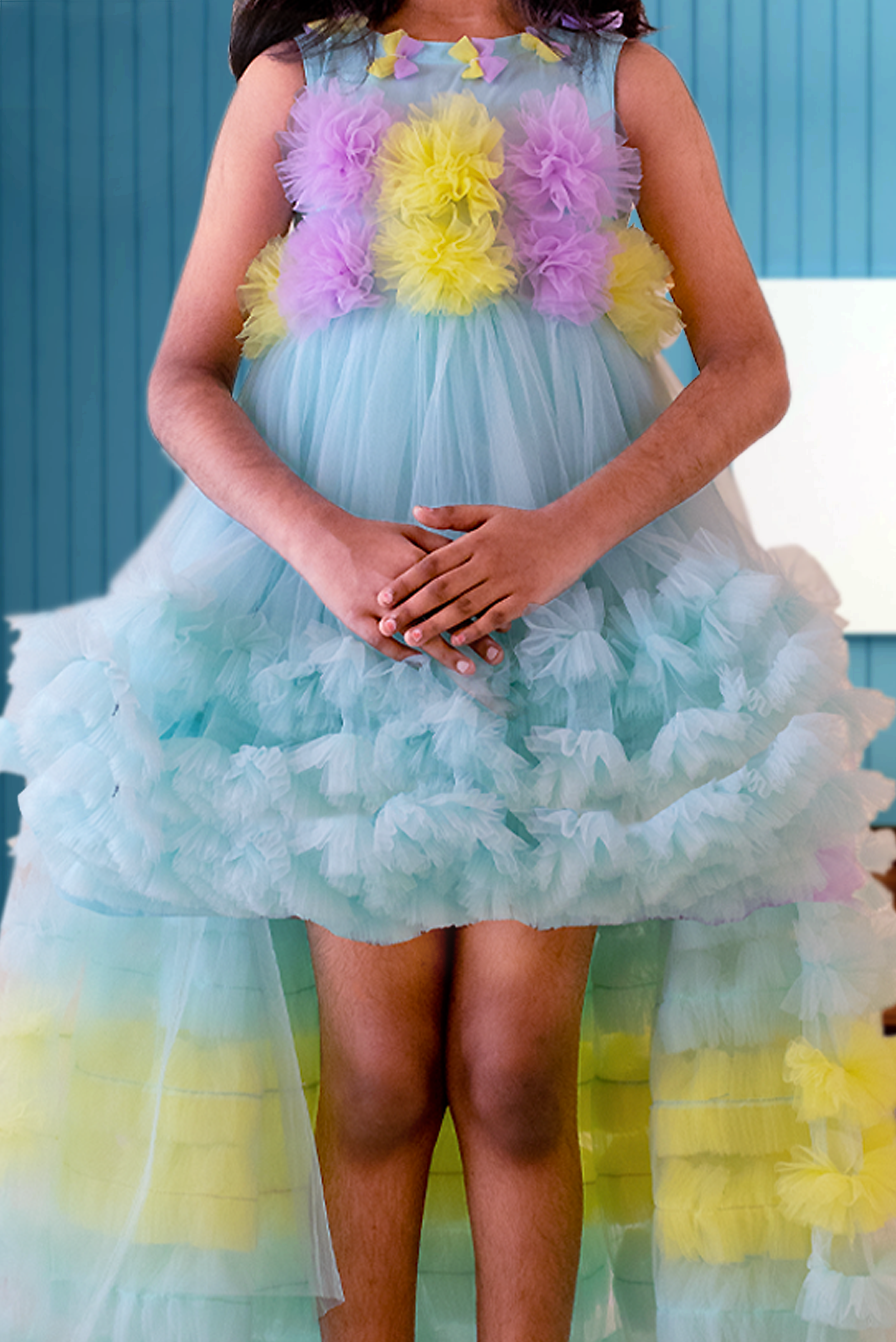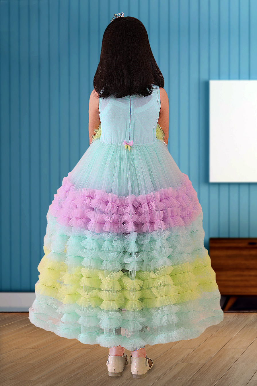 Kids Fuffy-Tulle Multi Color Frock