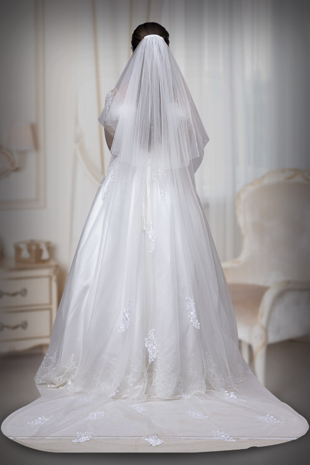 Light ivory oriental lace work net veil