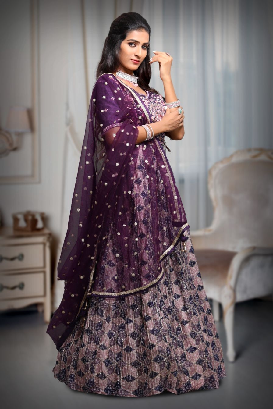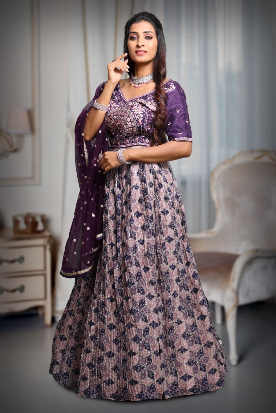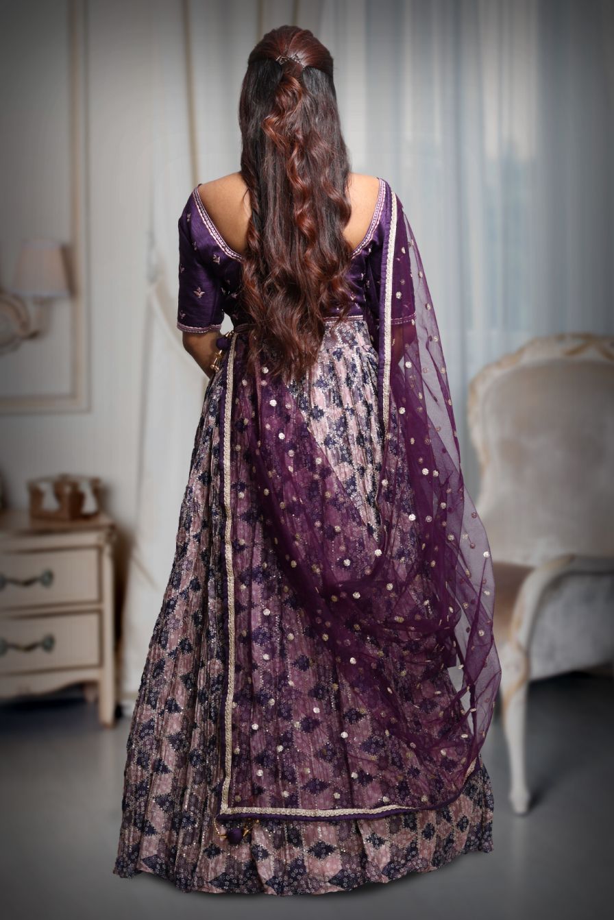 Light Purple Lehenga Set With Heavy Detailed Blouse and Minimal Dupattta