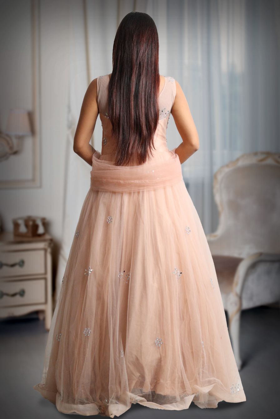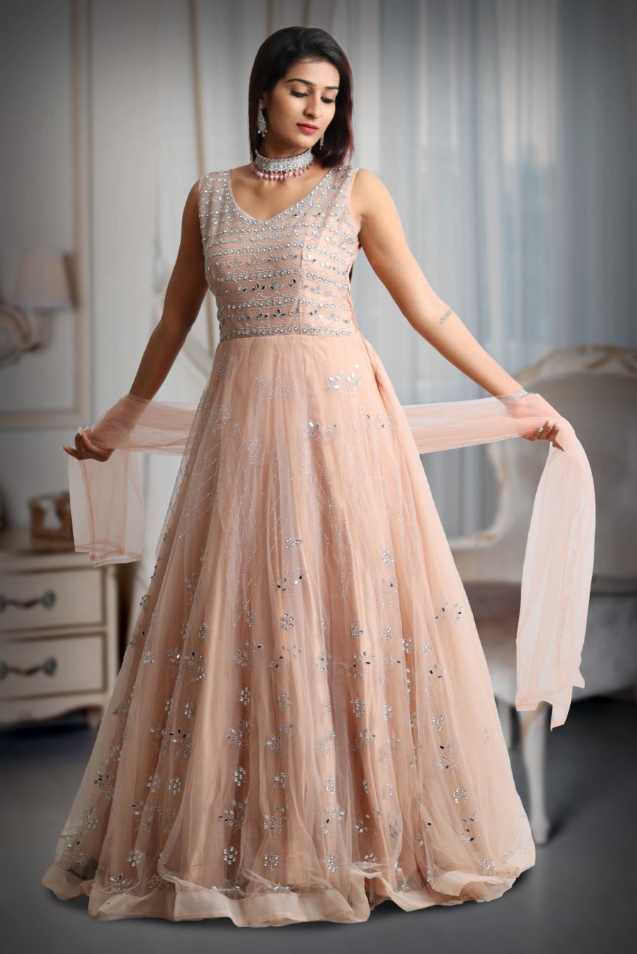 Pastel peach heavy stone worked gown