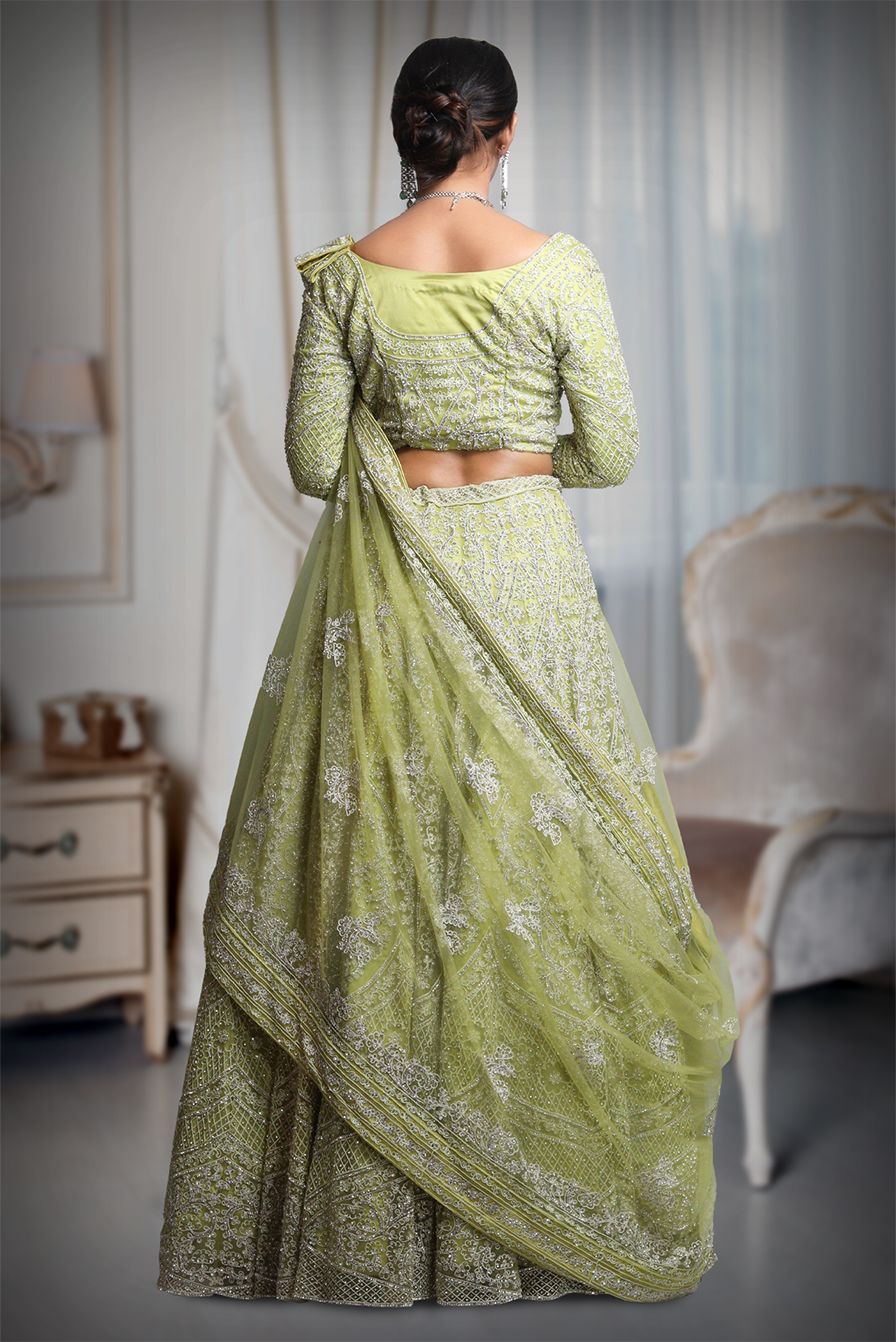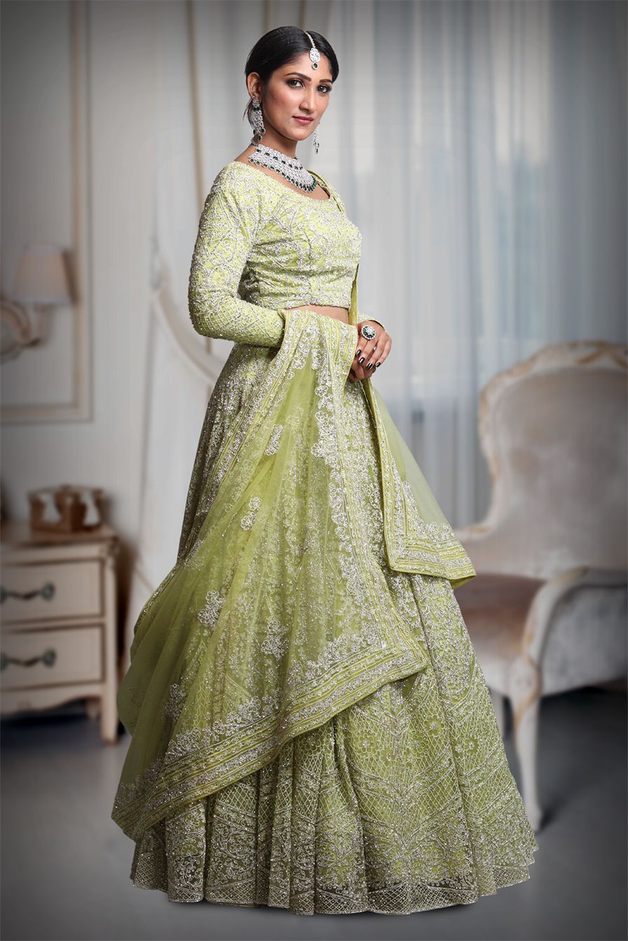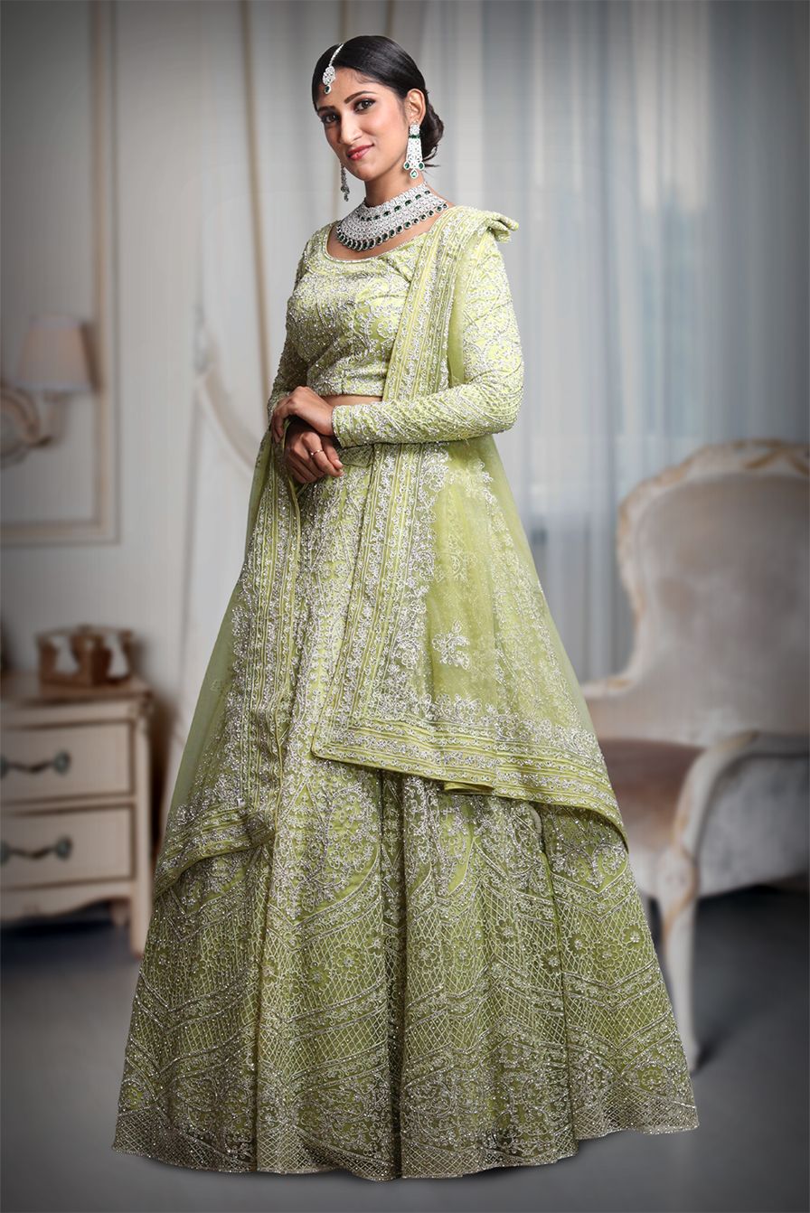 Pista green heavy thread work lehenga