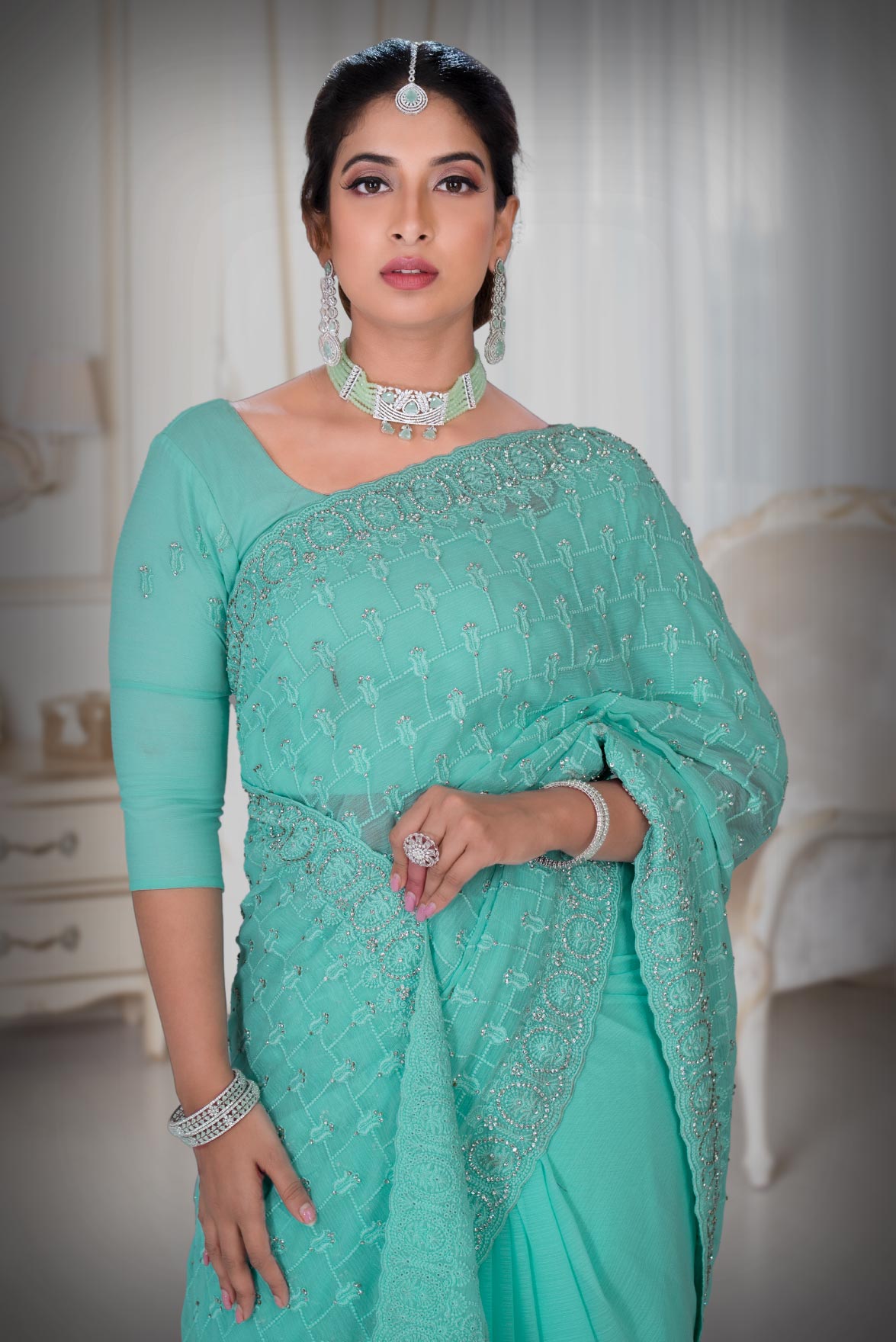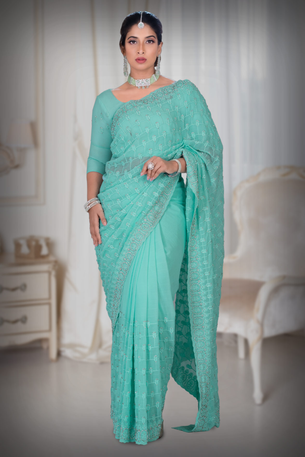 Sea Green Georgette Saree