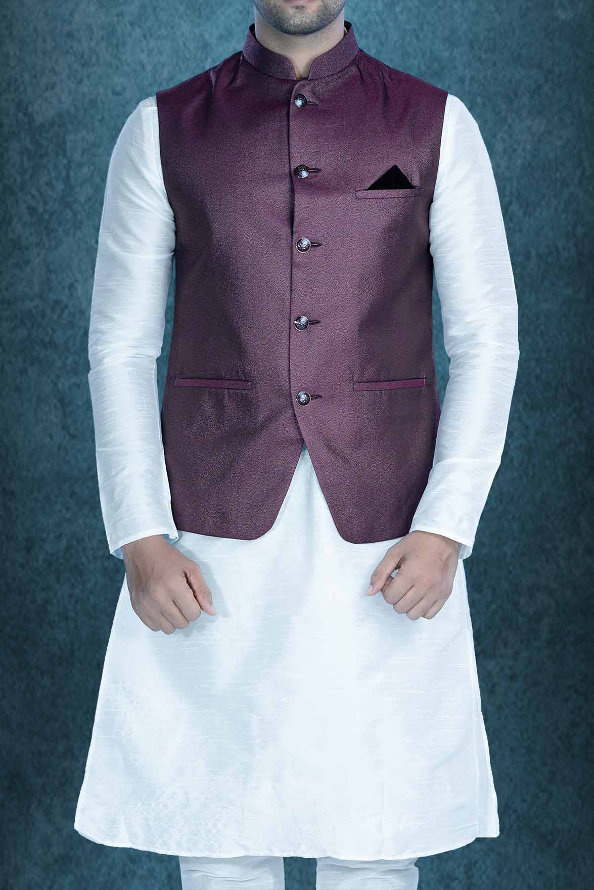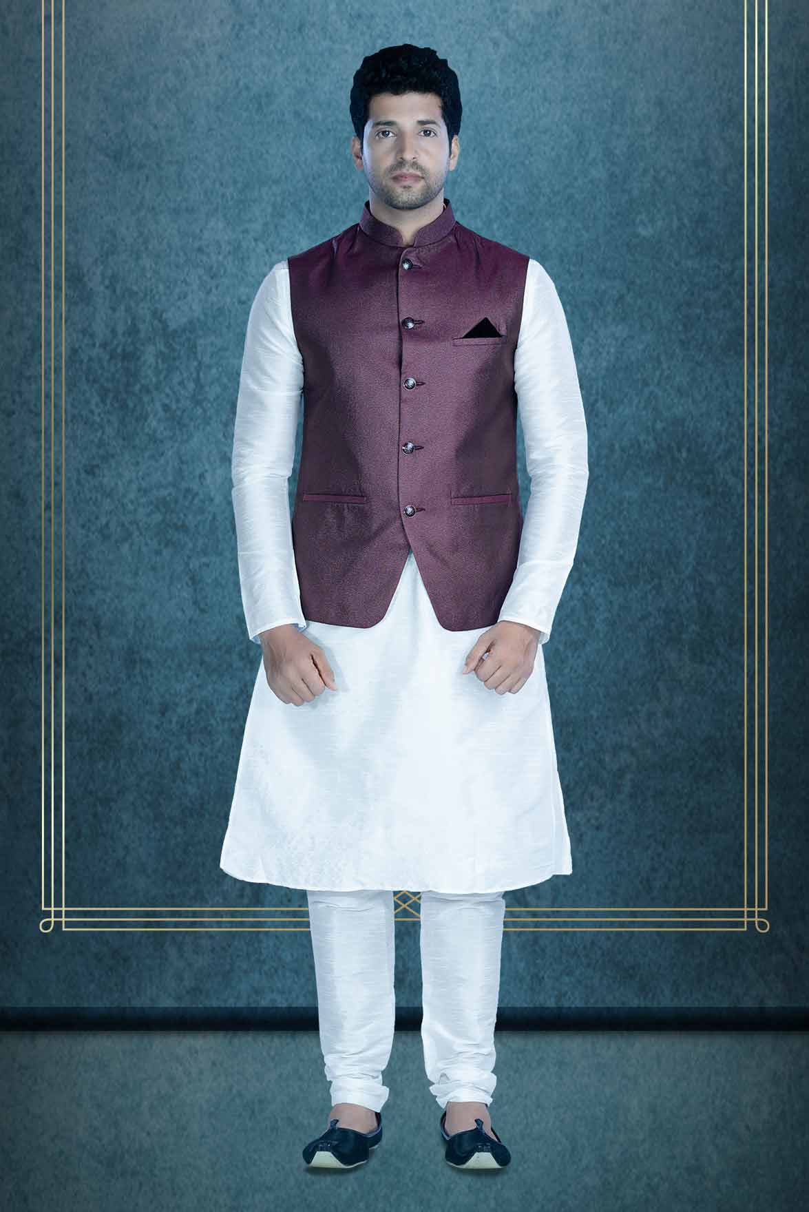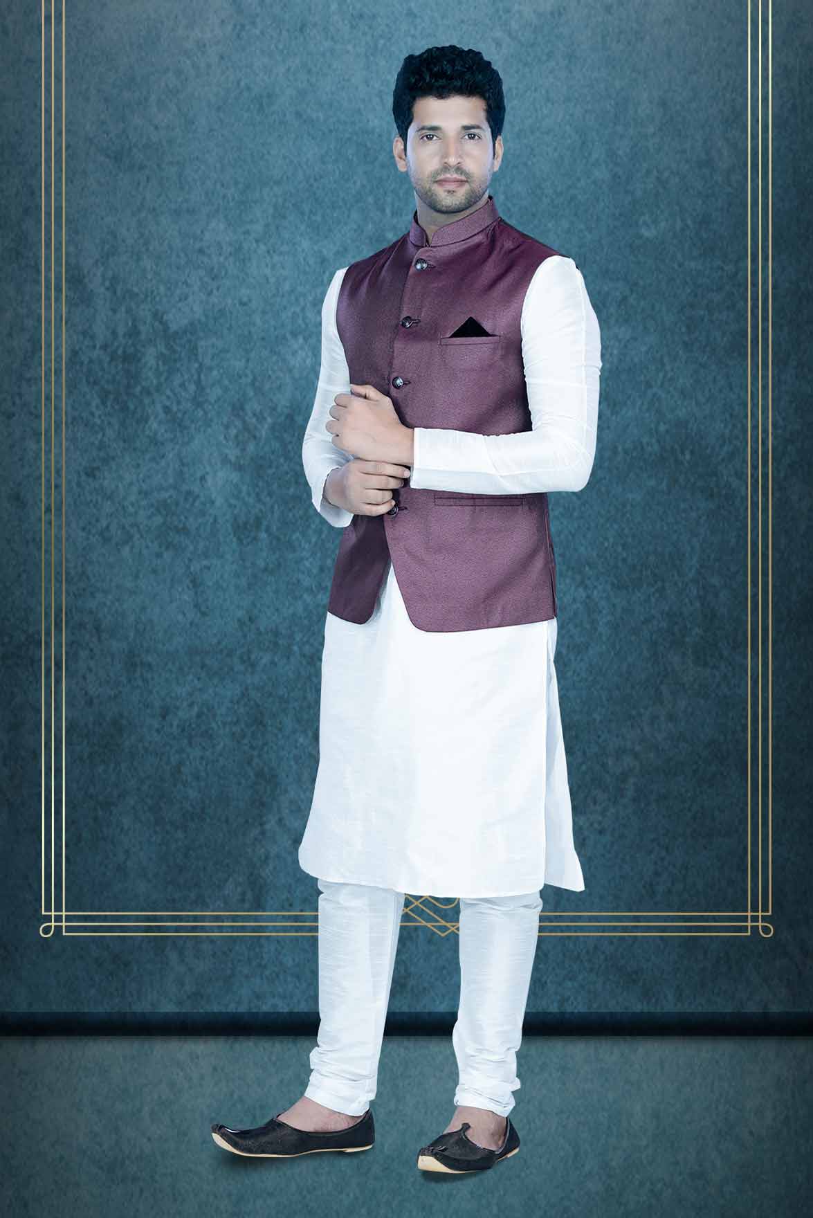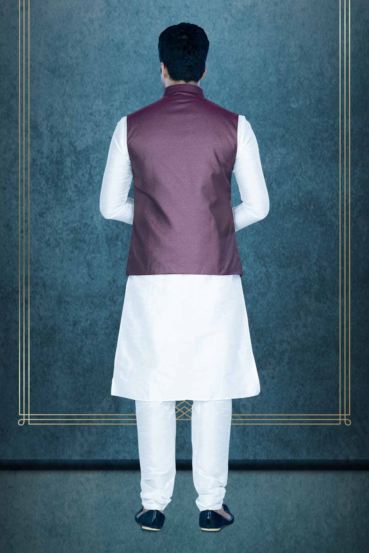 White Kurta Pyjama in Blended Fabric